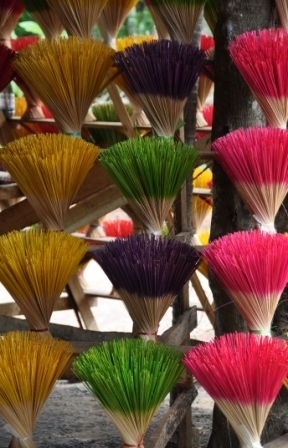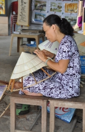 Enfin, visite de la fabrique de chapeaux coniques et de batons d’encens.