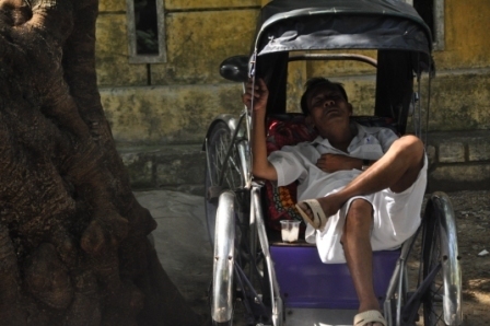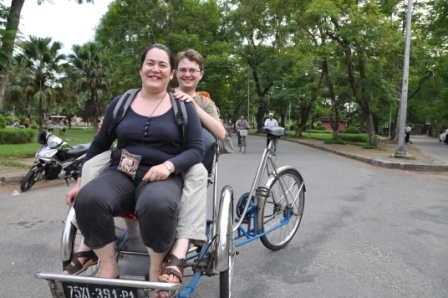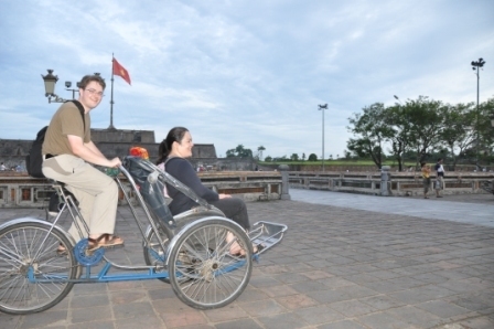 Le soir, tour en cyclo a la tombée de la nuit dans le quartier de la citadelle.