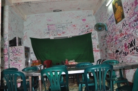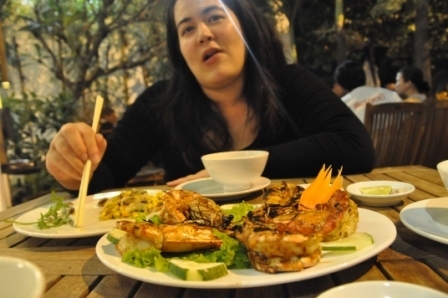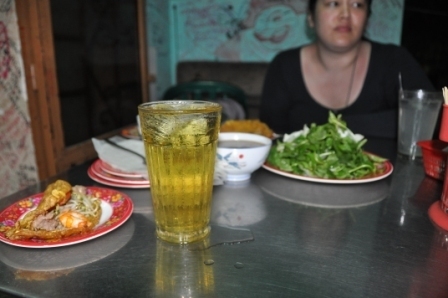Diner dans le restaurant des sourds et muets : au menu, banh khoai et nem bo lui (repas correct sans plus; un peu trop gras pour nous, mais apparemment c’est la recette qui veut ça).