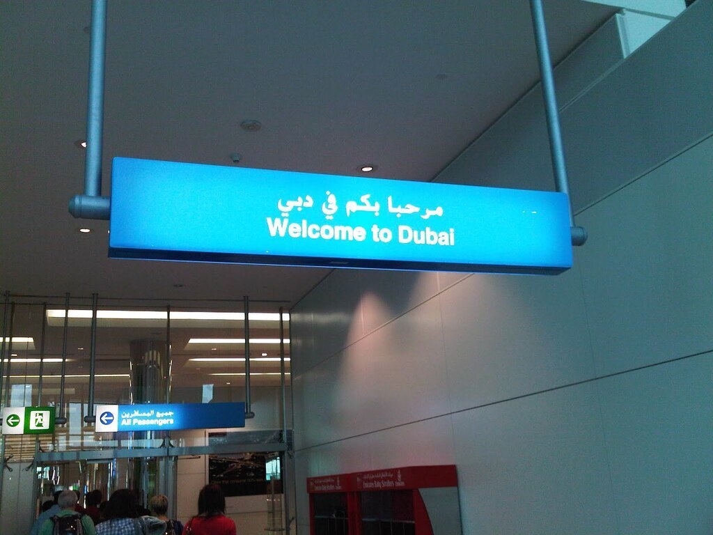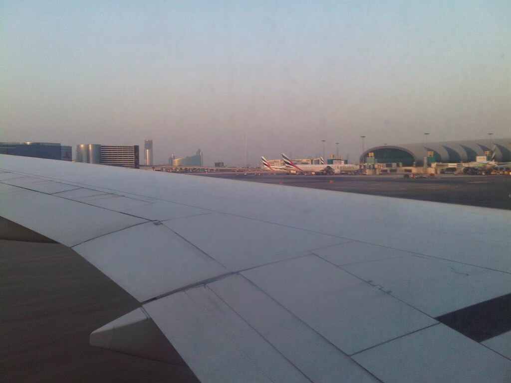 Nous sommes bien arrivés à Dubaï, après un vol plaisant agrémenté d’un succulent repas (agneau au curry bien épicé, miam !), de bons films et d’une courte sieste (merci au plantage de mon écran me permettant de me reposer un peu, pourtant ce n’était pas du microsoft windows…).