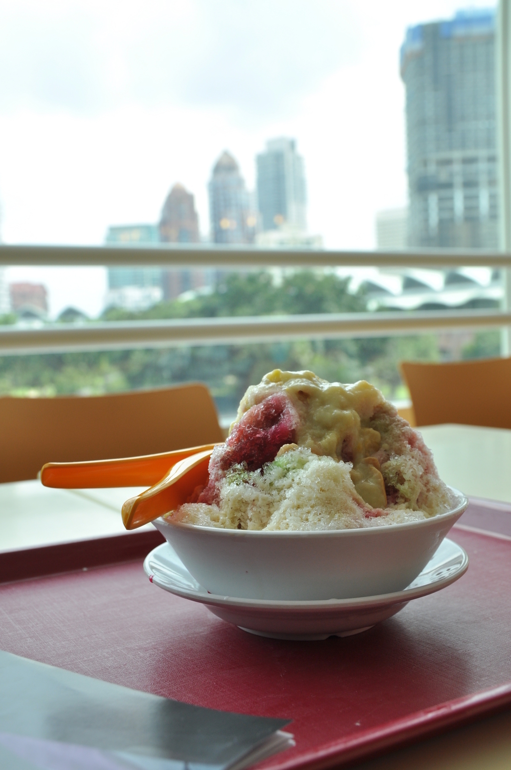 A défaut, nous avons visité le centre commercial au pied des tours (Suria KLCC) en nous réconfortant avec un Air Batu Campur (ou ABC), version avec un nappage au Durian ;)