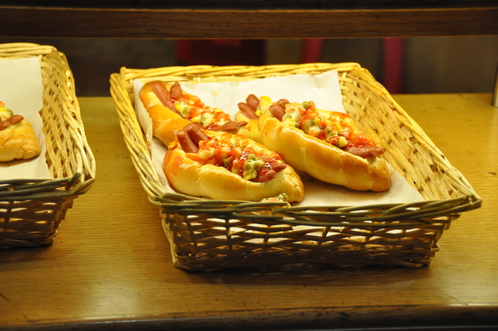 Des buns (brioches croquantes à l’extérieur et moelleuses à l’intérieur) et des brioches salées (saucisses, petits pois, crème, sauce tomate pimentée de type ketchup) ou sucrées (sucre de coco avec du fromage gratiné).