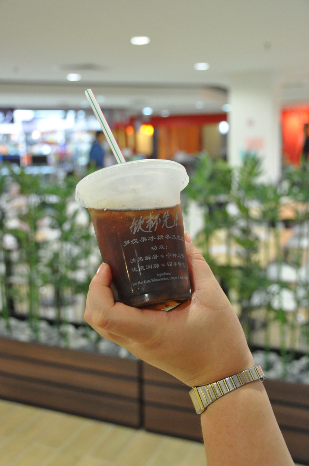 En rentrant, nous nous sommes perdus dans les centres commerciaux du triangle d’or dans lequel nous avons goûté une boisson aux longanes séchés et winter melon.