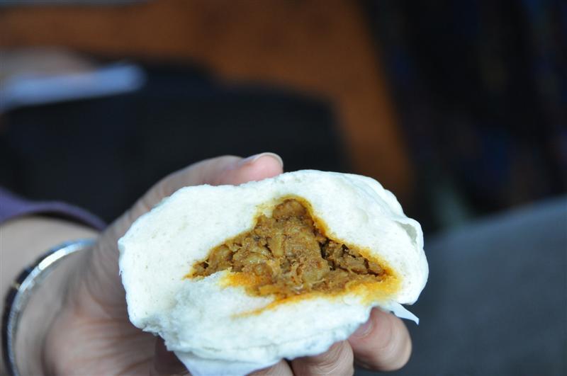 Lors d’un arrêt, achat de “Pau”, sortes de banh bao fourrés (poulet au curry, boeuf ou haricots sucrés).
