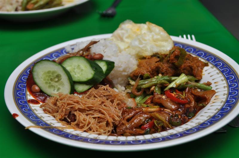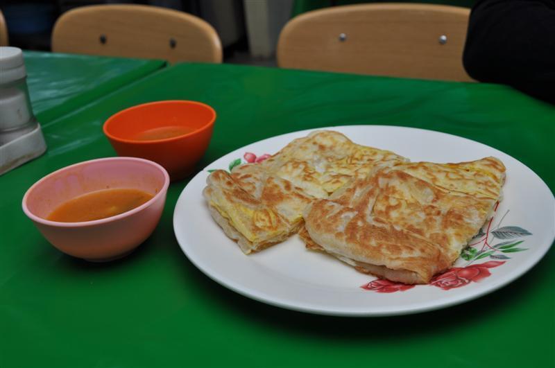 Ptit déjeuner local (assortiment de pates sautees, curry, legumes, riz au lait de coco, roti canai a l’oeuf) avant de prendre le bus vers Butterworth.