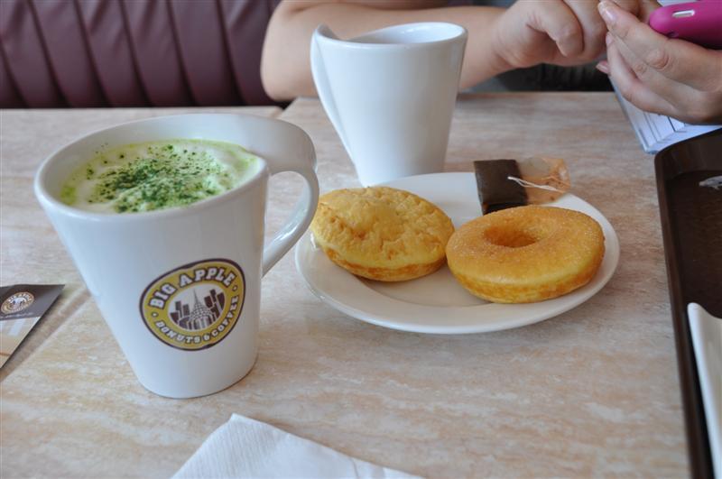 Donuts nature, au Durian (avec des petits pics sur le dessus, tout comme le vrai ^^), the vert au lait et the nature.