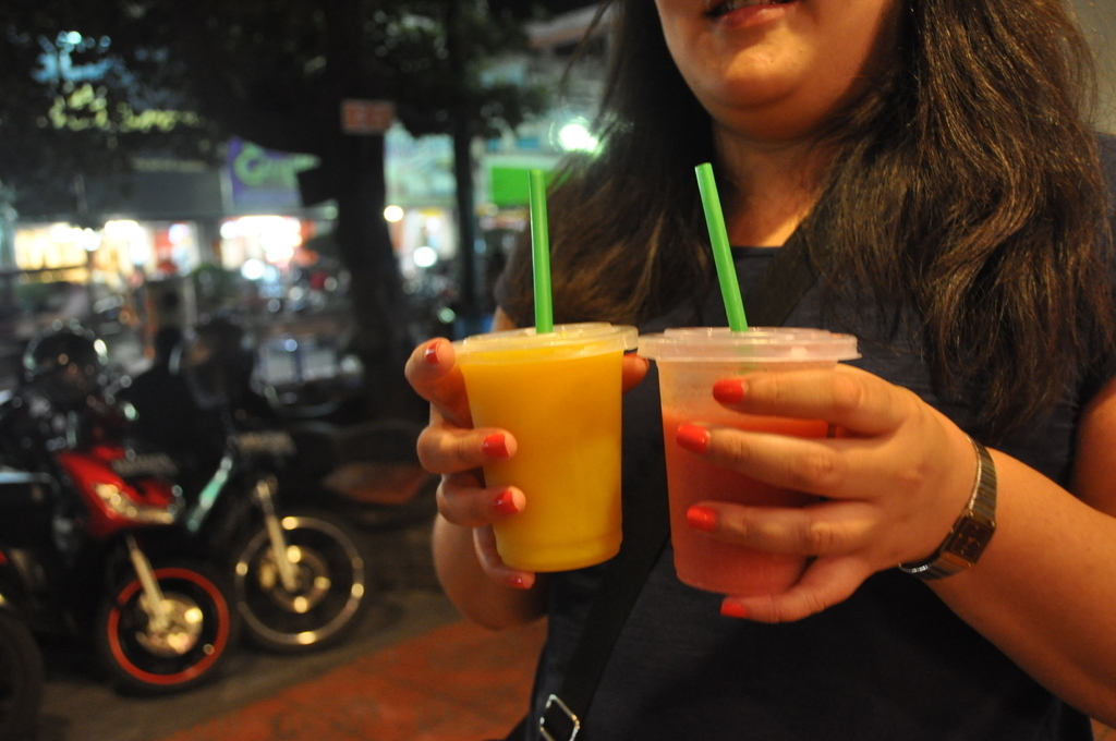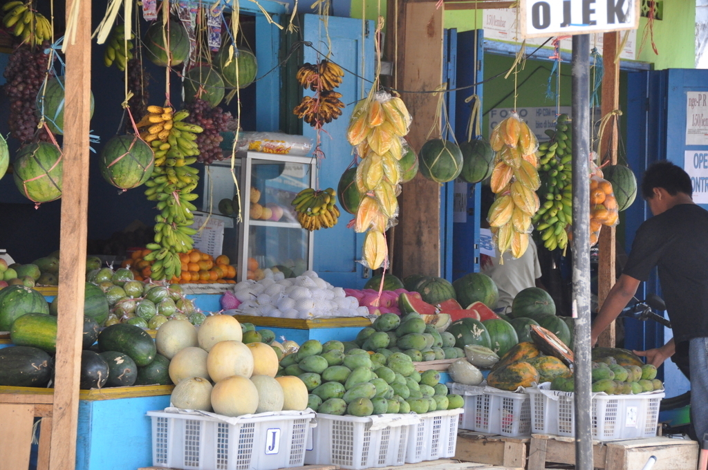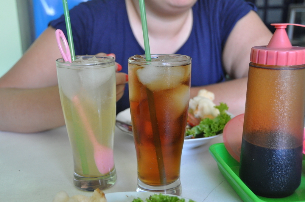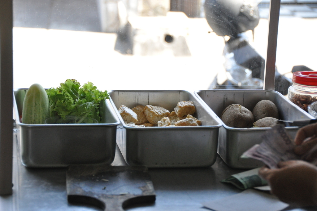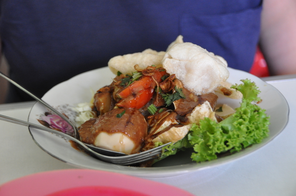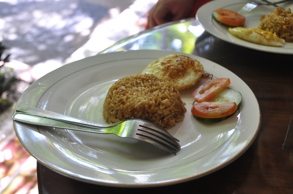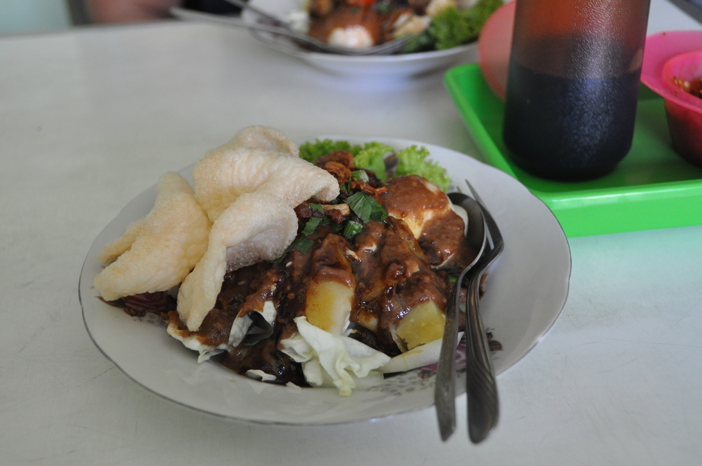 Nous avons mangé dans le coin un très bon gado gado (légumes avec une sauce à base de cacahuètes), arrosé d’un thé glacé et d’un jus de citron frais.