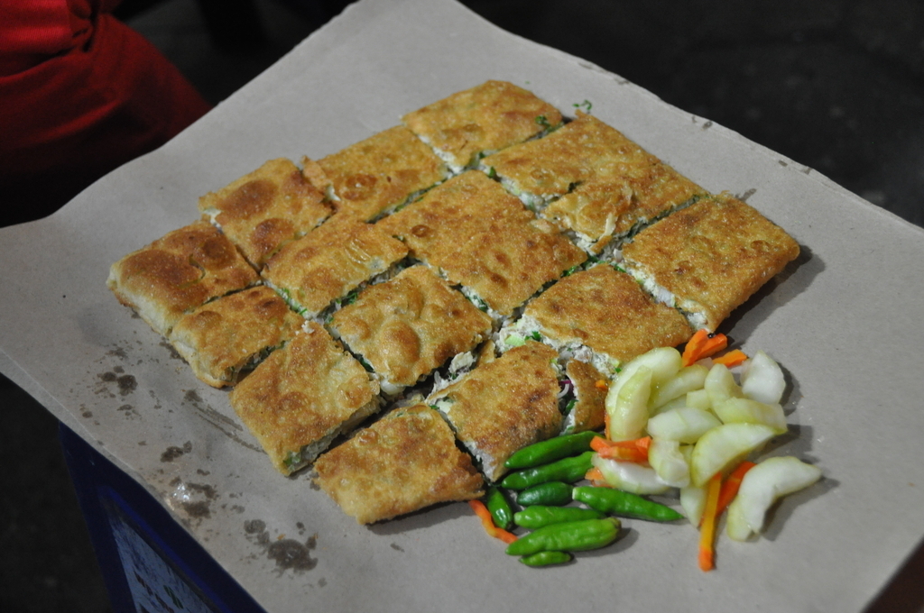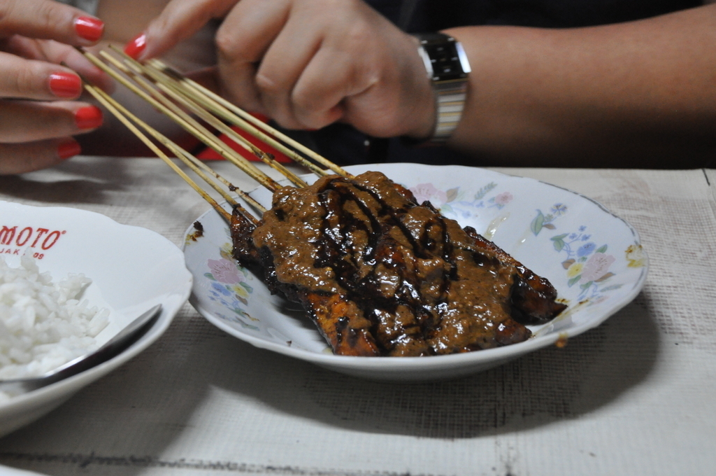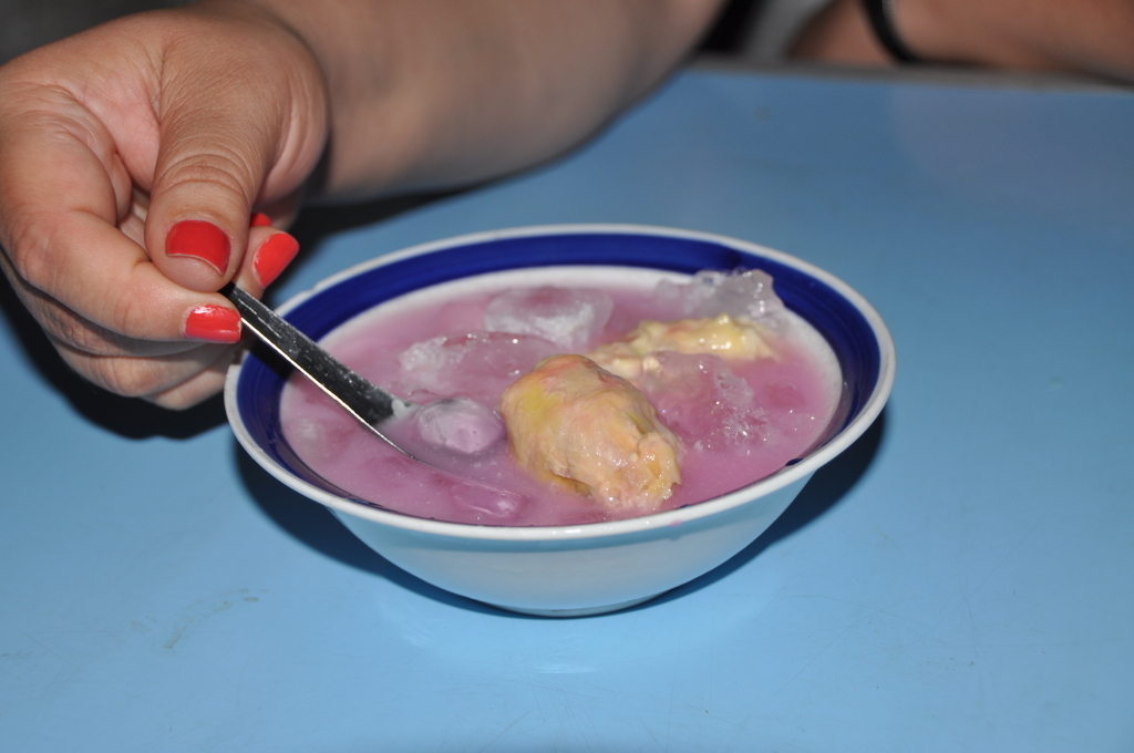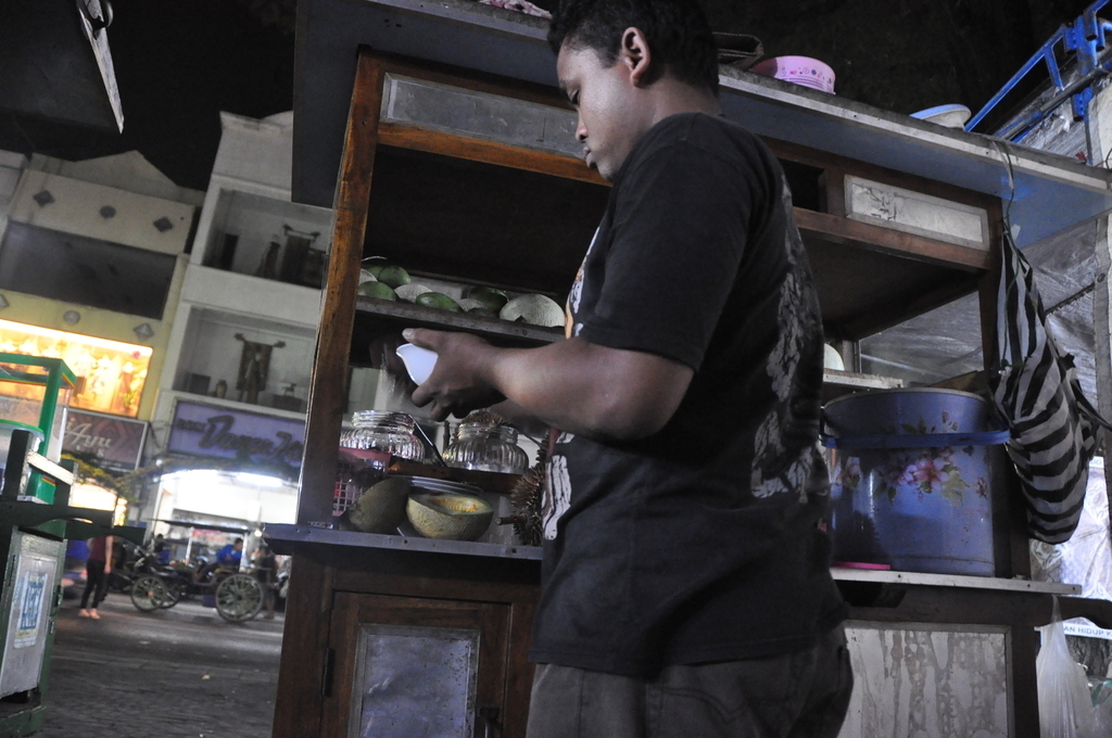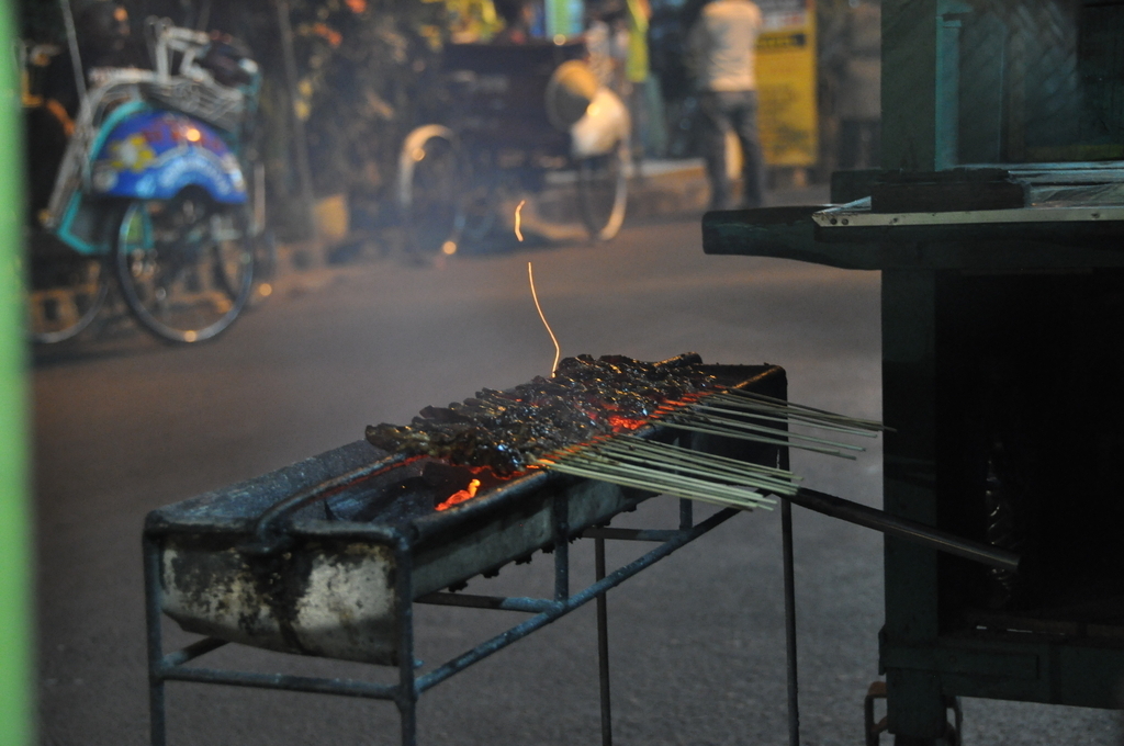 Balade dans la ville avant de déguster des brochettes de poulet et d’agneau/mouton/chèvre? (saté ayam et saté kambing), des jus de fruits fraîchement pressés (goyage et mangue), un mortabak (une sorte d’omelette au herbes légèrement croustillante) et un dessert glacé au durian.