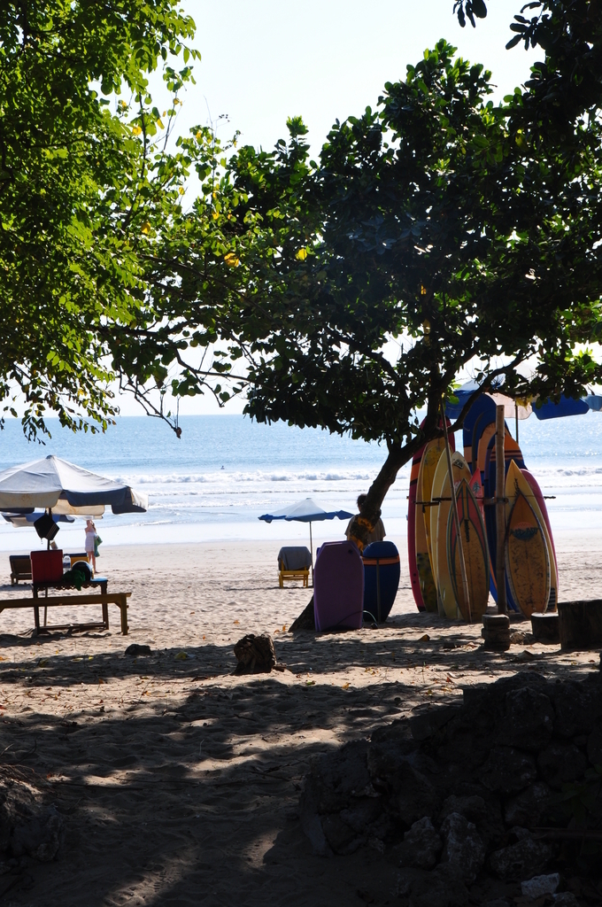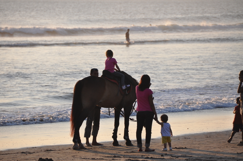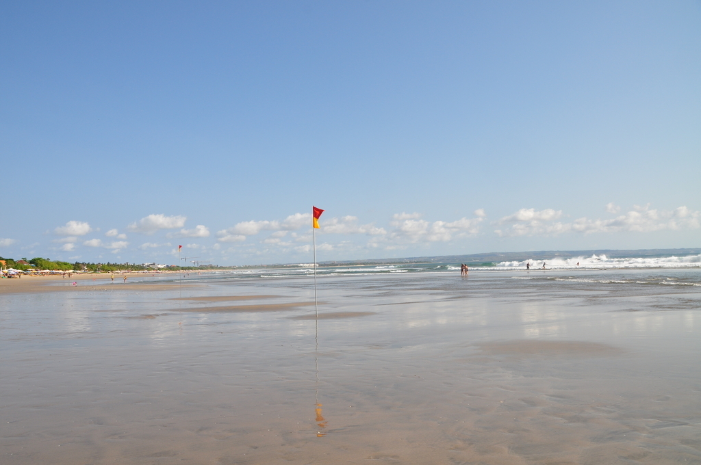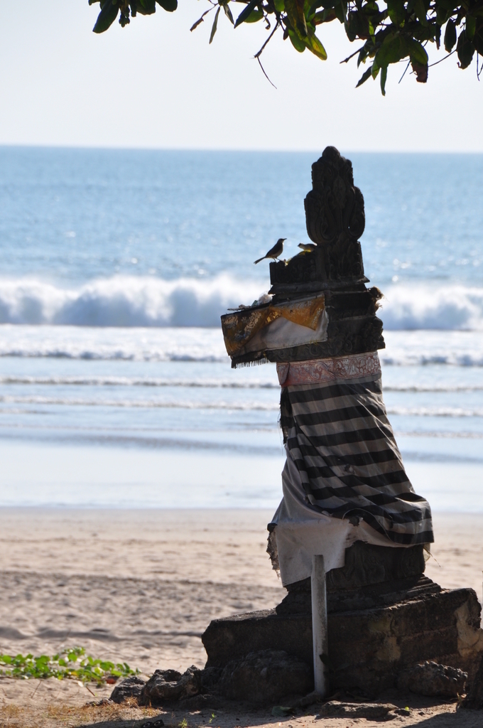 Celui des indonésiens, qui préférent généralement rester en retrait de la plage, à l’ombre des arbres, couverts des pieds à la tête pour filtrer les rayons ravageurs du soleil.
