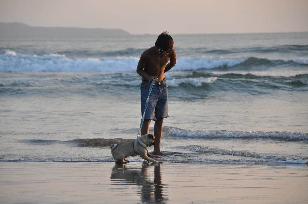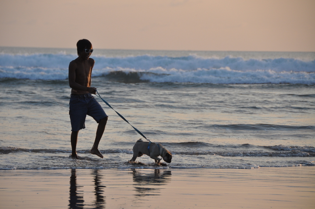 Certains en profitent cependant pour promener leur chiens et les initier à cette eau mouvante et salée si particulière.